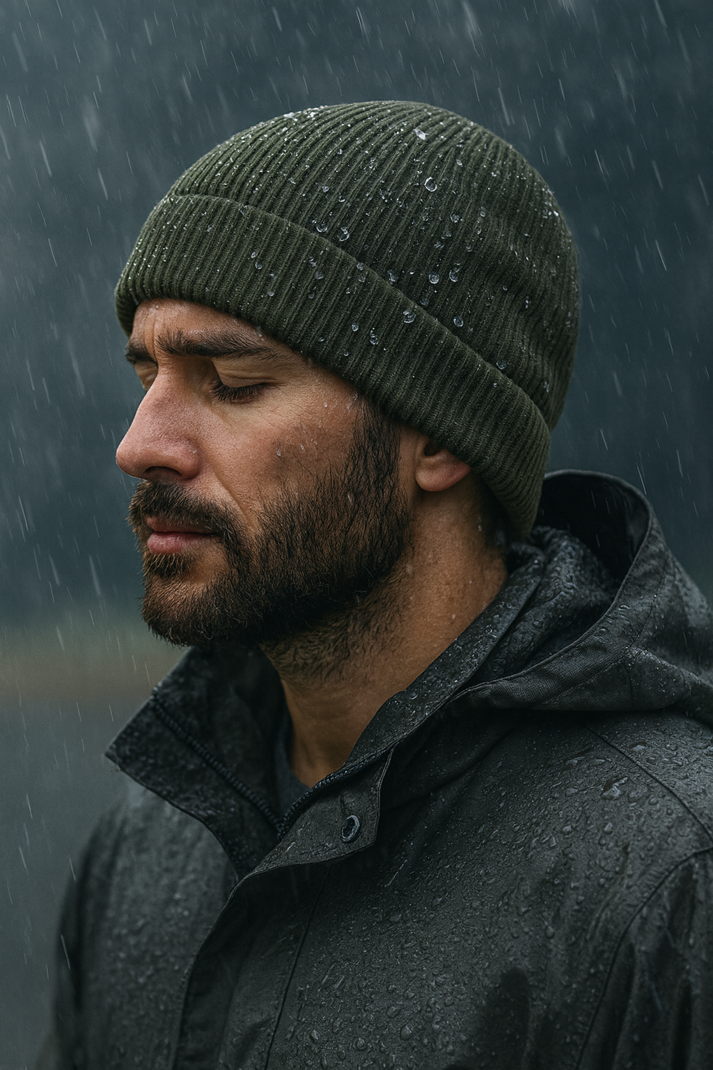 Die High-Performance-Materialstruktur hält Regen zuverlässig ab, speichert Wärme effizient und sorgt für ein konstant trockenes Tragegefühl. Gleichzeitig bleibt die Mütze flexibel, robust und komfortabel – perfekt für Training, Pendeln und jede Art von Outdoor-Einsatz.